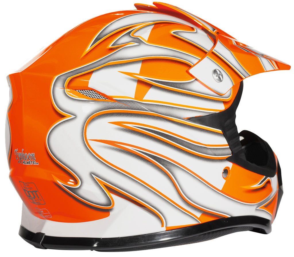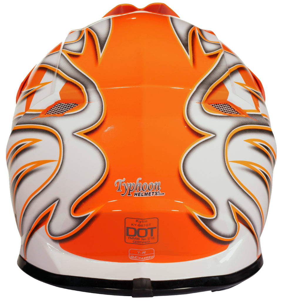 DOT approved off road helmet with an aerodynamic and modern shell design. Typhoon KYB07 youth helmets are designed with true youth sized shells for a slimmer profile and lighter helmet. The ventilation system allows for airflow throughout the interior of the helmet, perfect for warmer conditions. A quality breathable mesh lined padded liner and medium-soft density cheek pads help to keep the helmet securely in place while accommodating a variety of head shapes. Easily remove the machine washable padded liner as needed.