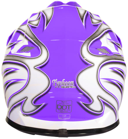 DOT approved off road helmet with an aerodynamic and modern shell design. Typhoon KYB07 youth helmets are designed with true youth sized shells for a slimmer profile and lighter helmet. The ventilation system allows for airflow throughout the interior of the helmet, perfect for warmer conditions. A quality breathable mesh lined padded liner and medium-soft density cheek pads help to keep the helmet securely in place while accommodating a variety of head shapes. Easily remove the machine washable padded liner as needed.